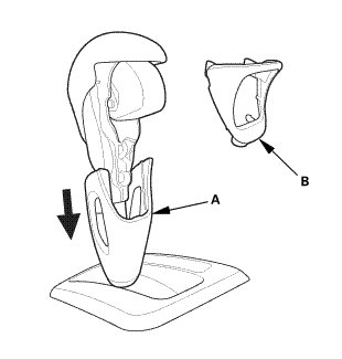 1. Install the shift lock unit (A) by aligning the four lock tabs (B).