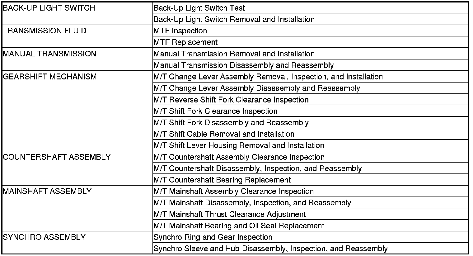 Manual Transmission/Transaxle