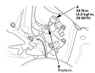 1. Remove the filler plug (A) and the sealing washer (B).