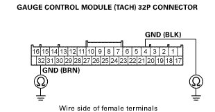 2. Determine possible failure area (gauge control module (tach) power and ground, B_CAN line):
