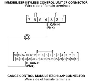 -NO- An open or poor connection in the B_CAN-H wire between the immobilizer-keyless control unit and the gauge control module (tach).
