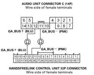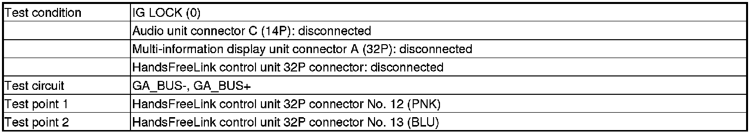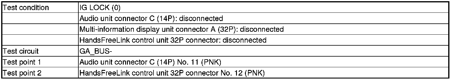 -NO- There is an open in the wire(s) between the HandsFreeLink control unit and the audio unit. Replace the affected shielded harness.