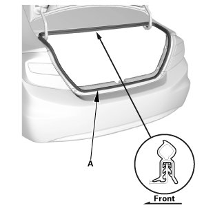 1. Remove the trunk lid weatherstrip (A) by pulling it off.