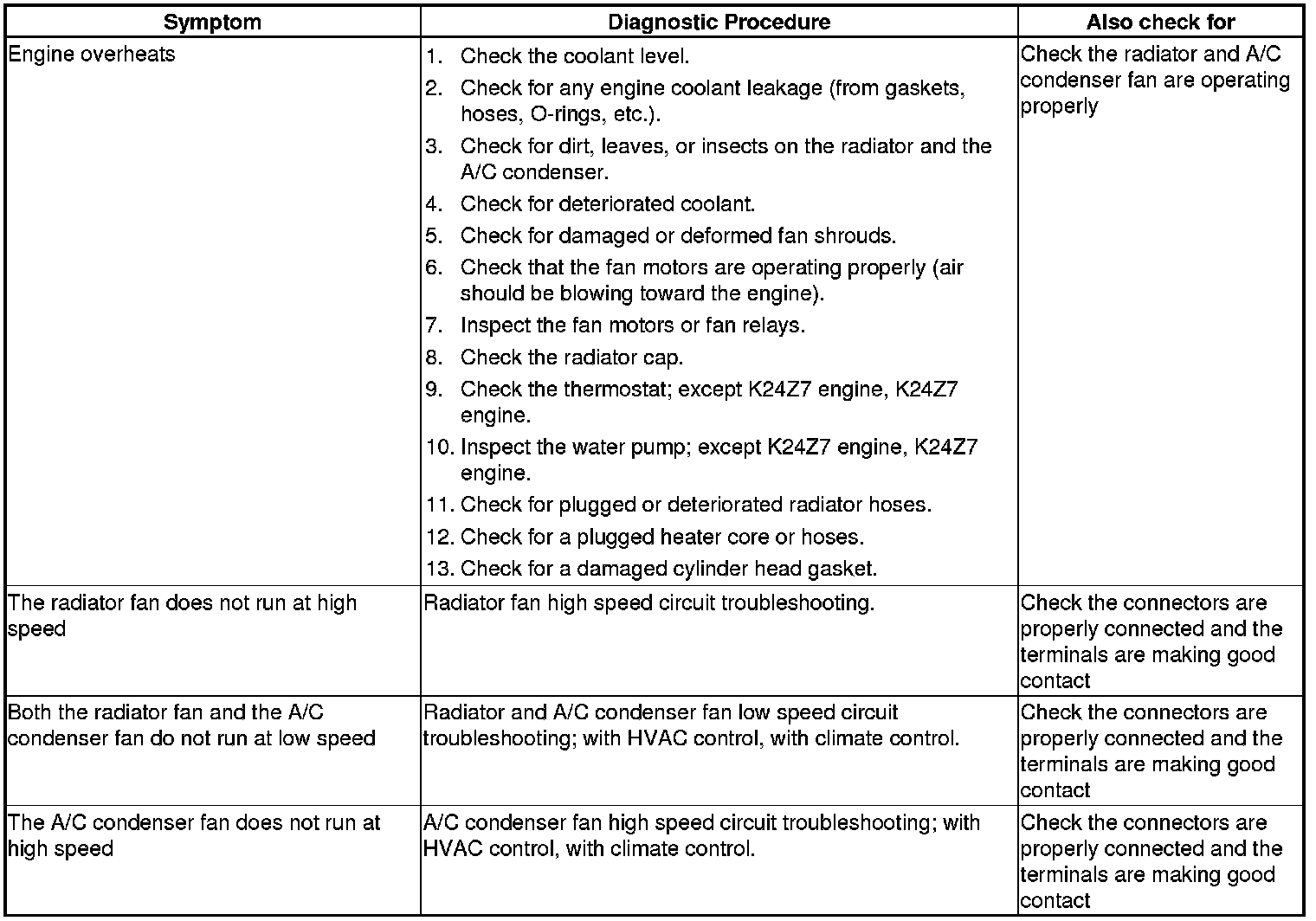 Cooling Fan Controls Symptom Troubleshooting Index