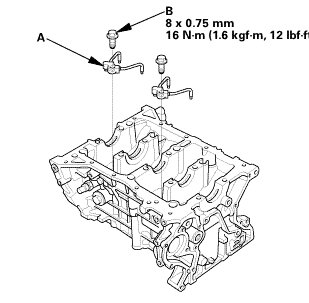 2. Tighten the oil jet bolts (B).