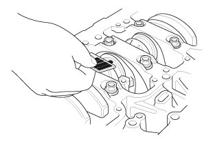 2. Apply new engine oil to the thrust washer surfaces. Install the thrust washers in the No. 4 journal of the engine block.