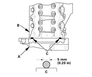 * Apply a 5 mm (0.20 in) diameter bead of liquid gasket to the mating surfaces (C).