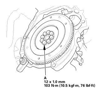 3. Tighten the flywheel mounting bolts (A) in a crisscross pattern in several steps.