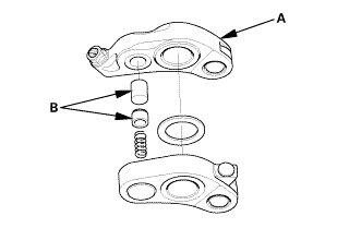 1. Inspect the rocker arm pistons (B). Push on each piston manually. If it does not move smoothly, replace the rocker arm set.