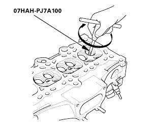 5. Rotate the valve guide reamer clockwise the full length of the valve guide bore.
