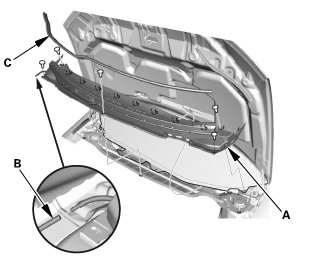 3. If necessary, remove the hood rear seal (C).