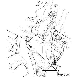 1. Loosely install the new lower torque rod mounting bolts (A).