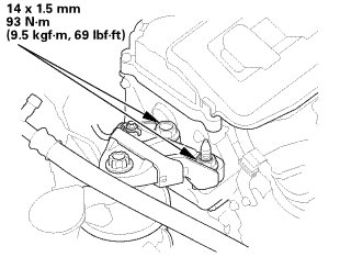 1. Install the lower torque rod bracket, and tighten the new bolts to the specified torque.