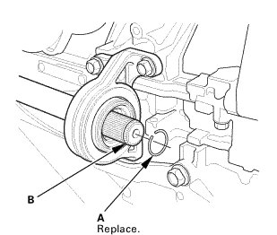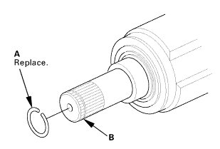 1. Left driveshaft: Install a new set ring (A) into the set ring groove (B) of the driveshaft.