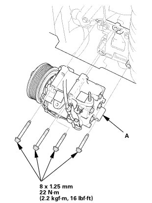 1. Install the A/C compressor (A).
