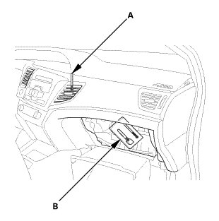 1. Lower the glove box (A).