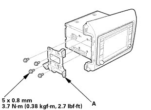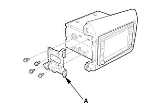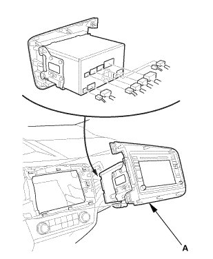 2. Disconnect the connectors, then pull out the audio-navigation unit (A).
