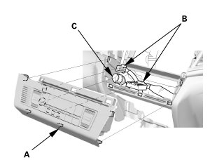 2. Install the climate control panel assembly (C).