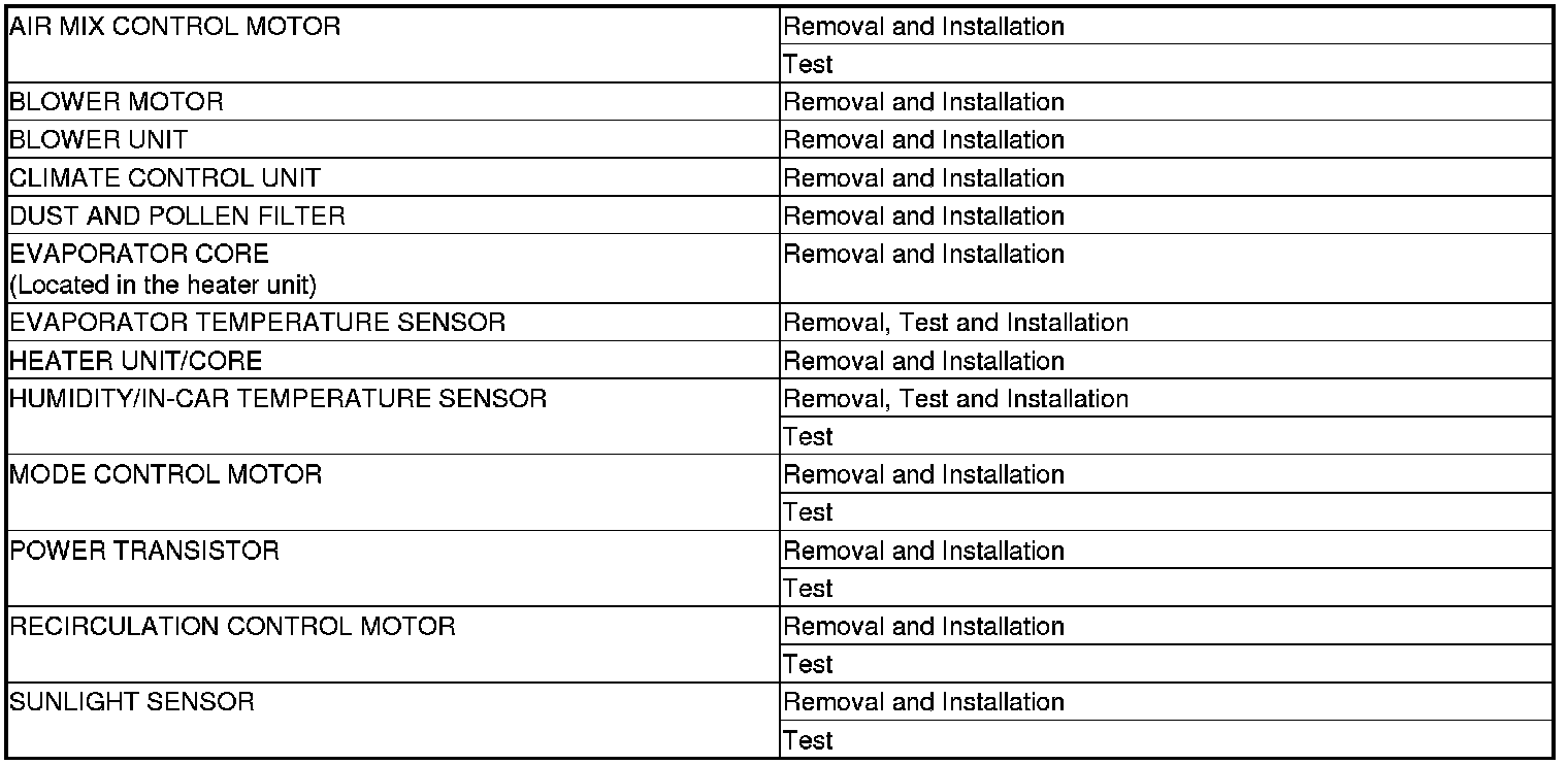 Climate Control System Component Location Index