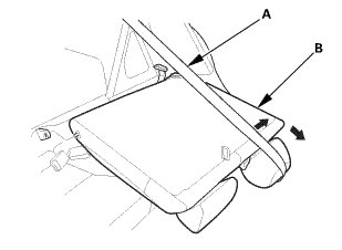 2. Extend the center seat belt (A), then remove the left rear seat-back (B).