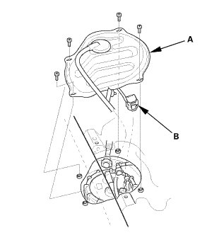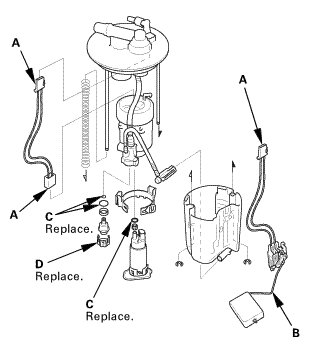 * When installing the fuel gauge sending unit (B), make sure the connection is secure and the connector is firmly locked into place. Be careful not to bend or twist it excessively.