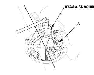 1. Using the special tool, loosen the locknut (A).