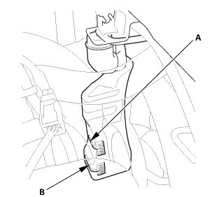 1. Check the coolant level in the coolant reservoir. Make sure it is between the MAX mark (A) and MIN mark (B).