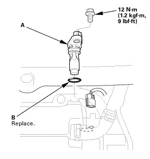 1. Install the CMP sensor (A) with a new O-ring (B).