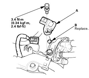 1. Install the MAP sensor (A) with a new O-ring (B).