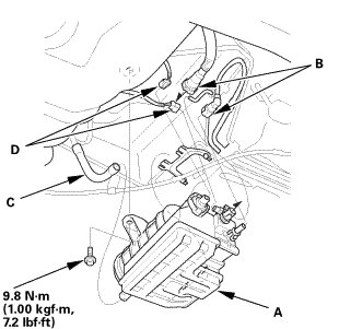 2. Remove the EVAP canister (D).
