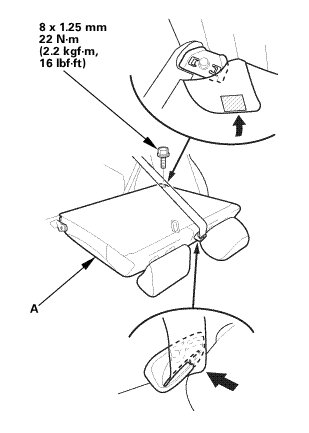 2. Install the bolt (A) securing the rear seat cushion (B).