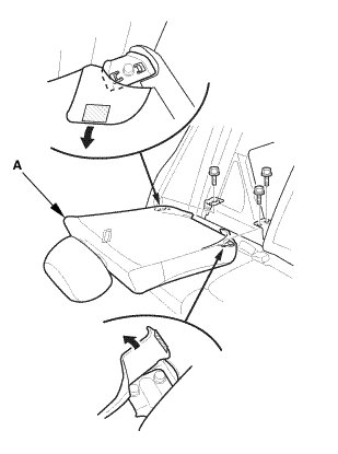 1. Remove the bolt (A) securing the rear seat cushion (B).