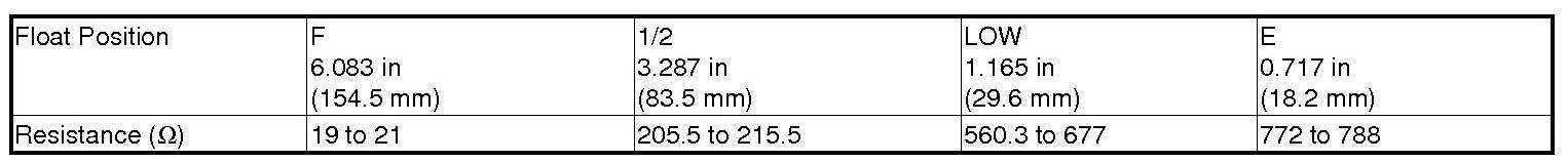 If you do not get the following readings, replace the fuel gauge sending unit.