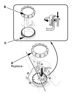 NOTE: To prevent a fuel leak, check the base gasket, visually or by hand, to make sure it is not pinched.