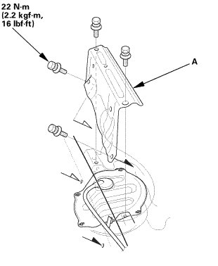 1. Remove the rear floor upper cross-member (A).