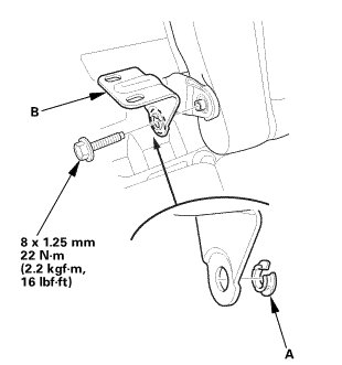 2. Install the bolt (A) securing the rear seat cushion (B).