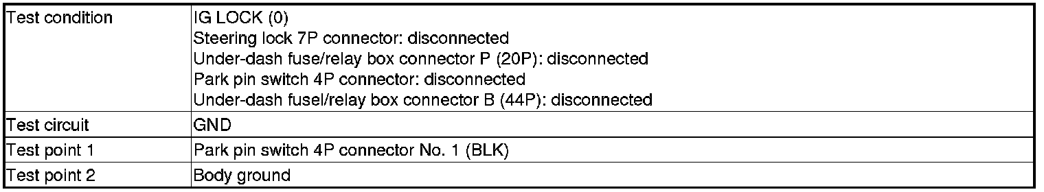 7. Park pin switch check: