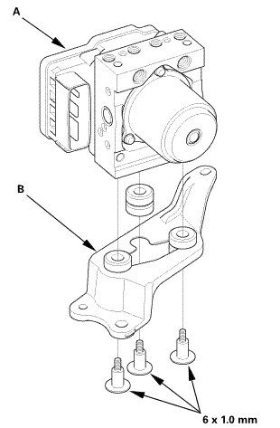 2. Install the VSA modulator-control unit (A) with the bracket (B).