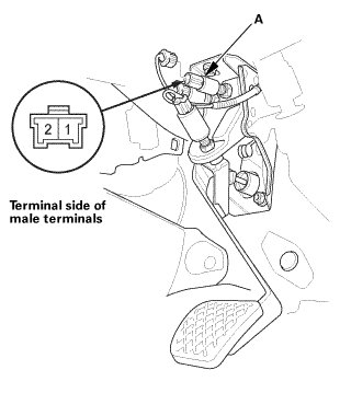 4. Adjust clutch pedal position switch A when the HDS screen indicates CLOSE to OPEN.