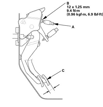 NOTE: Measure the clutch pedal height from middle of the clutch pedal cover or the clutch pedal pad cover (C).