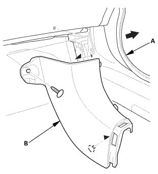 2. Remove the kick panel (B).