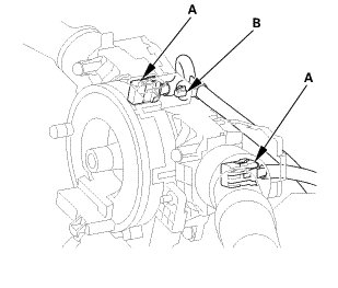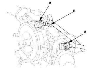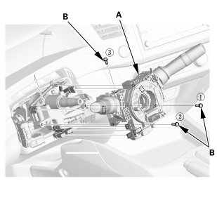 1. Disconnect the connectors (A) from the ignition switch (B).