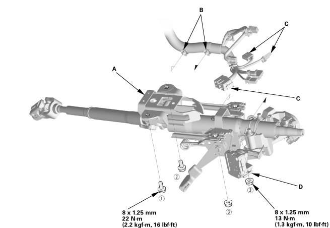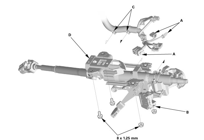 3. Remove the steering column (D).