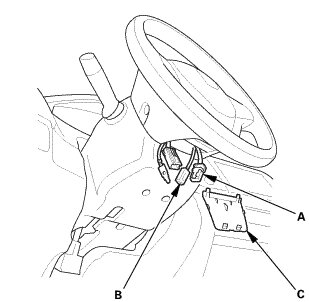 3. Disconnect the horn switch connector (C).