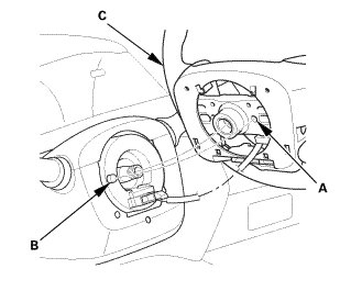 5. Install the steering wheel (C) on to the steering column shaft.