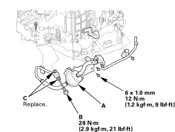 2. Remove the ATF inlet line/ATF hose/ATF filter assembly (C).