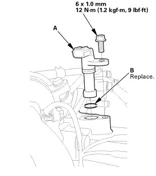 1. Remove the output shaft (countershaft) speed sensor (A) with the O-ring (B).