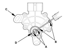 1. Remove the end cover (A), the dowel pins (B), the O-rings (C), and the end cover gasket (D).