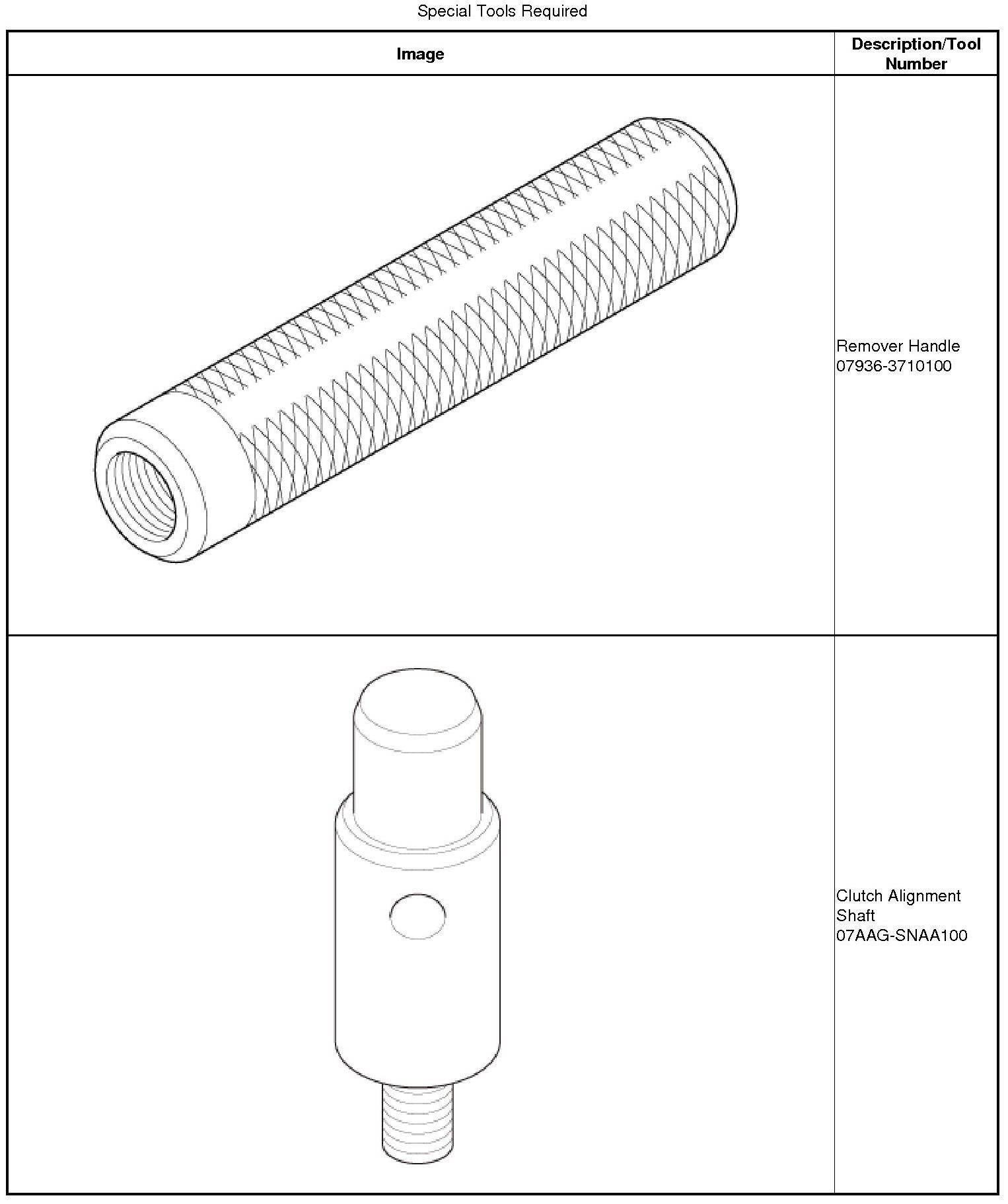 2. Install the clutch alignment shaft and the remover handle.