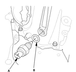 1. Remove the back-up light switch (A) and the 18 mm sealing washer (B).